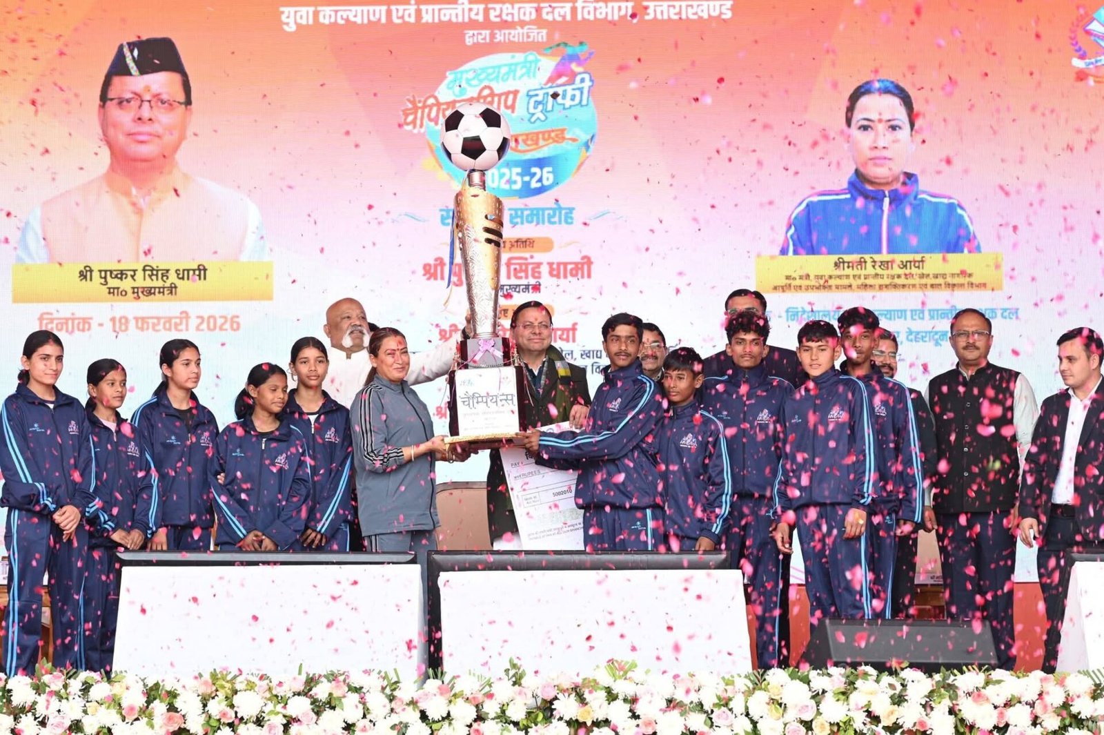 राजधानी देहरादून में युवा कल्याण एवं प्रांतीय रक्षा दल विभाग द्वारा आयोजित चैंपियंस ट्रॉफी 2026 के समापन कार्यक्रम में मुख्यमंत्री पुष्कर सिंह धामी ने शिरकत की।इस अवसर पर मुख्यमंत्री ने कहा कि चैंपियंस ट्रॉफी के माध्यम से ग्राम पंचायत से लेकर न्याय पंचायत और सीमांत क्षेत्रों तक के खिलाड़ियों को एक सशक्त मंच मिला है। उन्होंने बताया कि इस प्रतियोगिता में प्रदेशभर से 2 लाख 50 हजार से अधिक खिलाड़ियों ने प्रतिभाग किया है।मुख्यमंत्री ने कहा कि सरकार खिलाड़ियों को प्रोत्साहित करने में कोई कमी नहीं छोड़ रही है। इस आयोजन का मुख्य उद्देश्य प्रतिभावान खिलाड़ियों को आगे बढ़ने का अवसर देना है, ताकि वे खेल के क्षेत्र में अपना करियर बना सकें और प्रदेश व देश का नाम रोशन करें।उन्होंने यह भी बताया कि विजेता खिलाड़ियों को लगभग 11 करोड़ रुपये की धनराशि डीबीटी (डायरेक्ट बेनिफिट ट्रांसफर) के माध्यम से सीधे उनके बैंक खातों में भेजी जा रही है।मुख्यमंत्री ने कहा कि सरकार का प्रयास है कि आर्थिक रूप से कमजोर और गरीब परिवारों के खिलाड़ियों की प्रतिभा संसाधनों के अभाव में दबकर न रह जाए। इसके लिए राज्य सरकार निरंतर कार्य कर रही है।