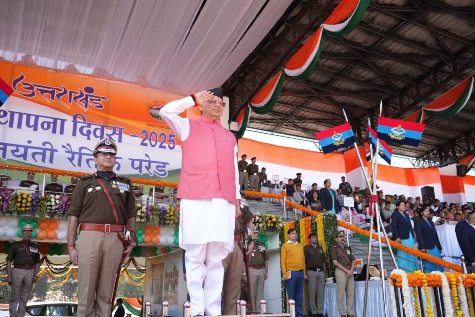 उत्तराखंड राज्य गठन के 25 वर्ष पूरे होने पर पूरे प्रदेश में धूमधाम के साथ रजत जयंती समारोह मनाया जा रहा है। जगह-जगह पर आयोजित समारोह के क्रम में राजधानी देहरादून के पुलिस लाइन में रैतिक परेड का आयोजन किया गया।