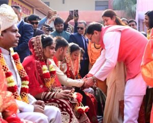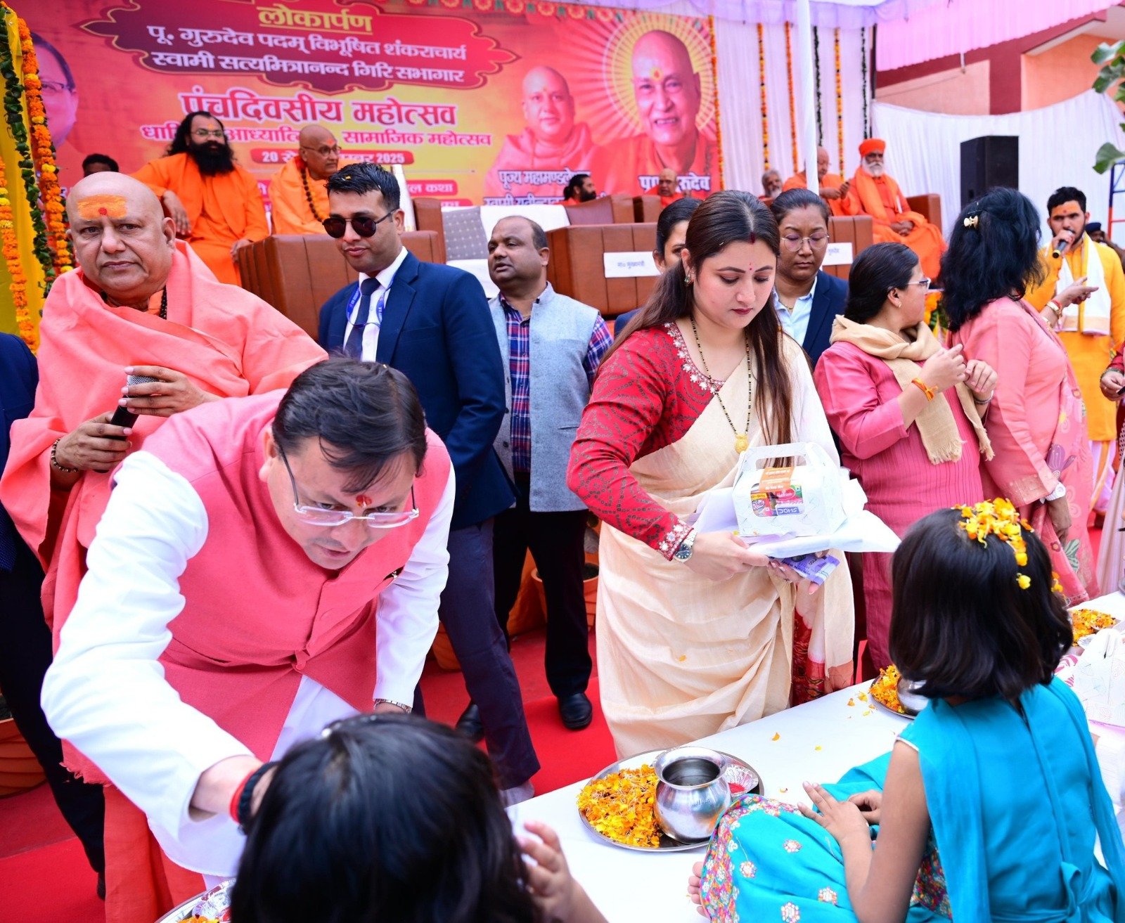 साथ ही साधु-संतों का आशीष प्राप्त किया एवं ब्रह्मलीन शंकराचार्य स्वामी सत्यमित्रानंद गिरी सभागार का लोकार्पण कर सनातन धर्म और जीवन दर्शन पुस्तक का विमोचन किया। इस अवसर पर कन्या पूजन करने के साथ ही सामूहिक विवाह कार्यक्रम में परिणय सूत्र में बंधे नवदंपत्तियों को नव जीवन की शुभकामनाएं दी।