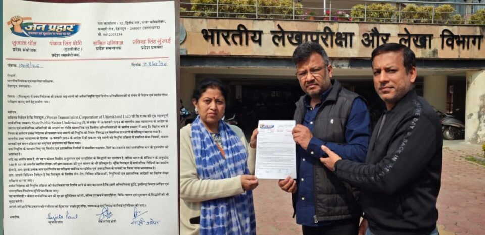 पिटकुल में प्रबंध निदेशक की नियुक्ति एवं वित्तीय अनियमितताओं की जांच हेतु विशेष ऑडिट की मांग जन संगठन जन प्रहार ने आज Comptroller and Auditor General of Uttarakhand को एक औपचारिक प्रार्थना-पत्र प्रेषित कर Power Transmission Corporation of Uttarakhand Limited (पिटकुल) में कथित प्रशासनिक एवं वित्तीय अनियमितताओं की उच्चस्तरीय, स्वतंत्र एवं विशेष लेखा परीक्षा (Special Audit) कराने की मांग की है। प्रेस को जारी बयान में जन प्रहार के पदाधिकारियों ने कहा कि पिटकुल के वर्तमान प्रबंध निदेशक श्री प्रकाश चंद्र ध्यानी की नियुक्ति प्रक्रिया को लेकर गंभीर प्रश्न खड़े हुए हैं। 18 फरवरी 2026 को माननीय उत्तराखंड उच्च न्यायालय द्वारा पारित आदेश के उपरांत यह तथ्य सामने आया है कि नियुक्ति प्रक्रिया में प्रचलित सेवा नियमों, पात्रता मानकों एवं वैधानिक औपचारिकताओं का समुचित अनुपालन नहीं किया गया।