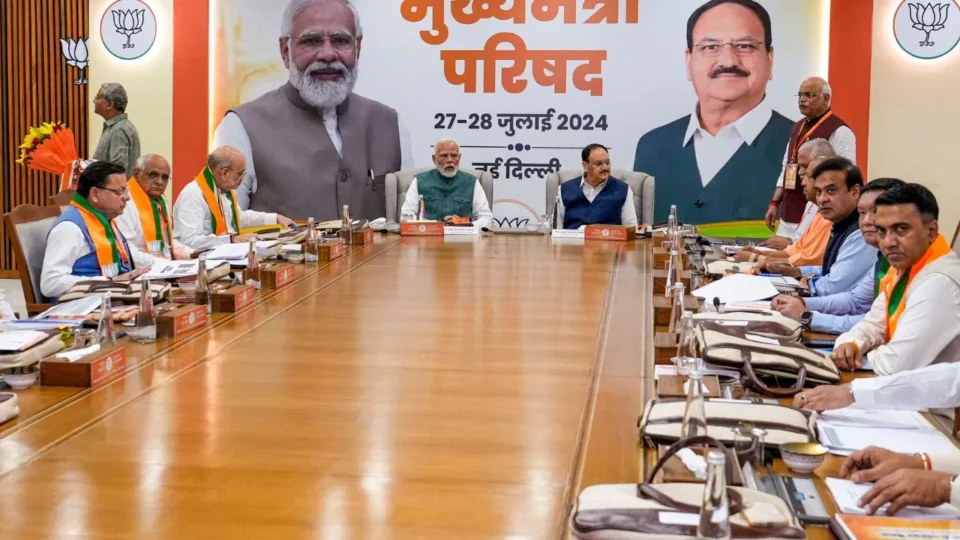 प्रधानमंत्री नरेंद्र मोदी ने रविवार को दिल्ली स्थित पार्टी मुख्यालय में भाजपा शासित राज्यों के मुख्यमंत्रियों और उपमुख्यमंत्रियों की बैठक की अध्यक्षता की. बैठक में केंद्रीय गृह मंत्री अमित शाह, रक्षा मंत्री राजनाथ सिंह और भाजपा के राष्ट्रीय अध्यक्ष जेपी नड्डा समेत भाजपा के आला नेता उपस्थित थे.