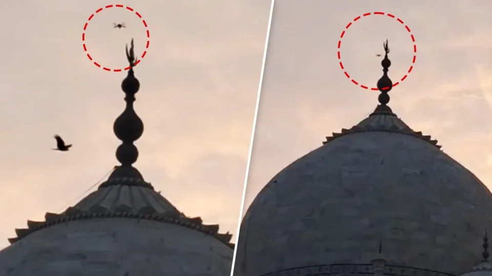 उत्तर प्रदेश के आगरा में बेहद संवेदनशील ताज महल के ऊपर एक ड्रोन के उड़ने का वीडियो सोशल मीडिया में वायरल हो रहा है. यह वीडियो उस समय सामने आया है जब ताज महल के 500 मीटर रेडियस को नो फ्लाइंग जोन घोषित है. बताया जा रहा है कि यह वीडियो रविवार सुबह छह बजे का है. हालांकि सुरक्षा के लिए लगे पुलिस के सीसीटीवी कैमरे में यह ड्रोन कहीं नजर नहीं आ रहा. ऐसे में आशंका है कि किसी व्यक्ति ने इस ड्रोन की एंट्री यमुना की साइड से ताज क्षेत्र में कराई है.