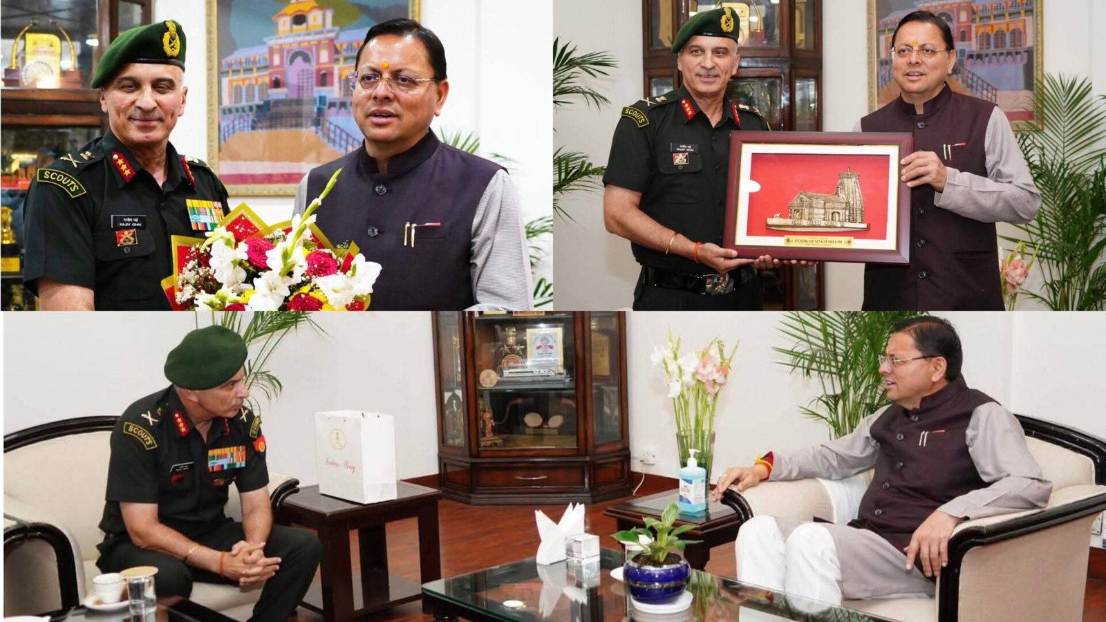 मुख्यमंत्री पुष्कर सिंह धामी से शासकीय आवास पर उप सेना प्रमुख (स्ट्रेटजी) लेफ्टिनेंट जनरल राजीव घई जी ने भेंट की।इस अवसर मुख्यमंत्री और उनके मध्य विभिन्न समसामयिक विषयों पर चर्चा हुई।