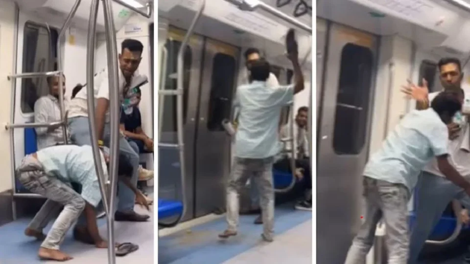 दिल्ली मेट्रो में अब ये क्या हुआ! एक ने मारी चप्पल तो दूसरे ने जड़ा थप्पड़, Video बनाते रहे यात्री