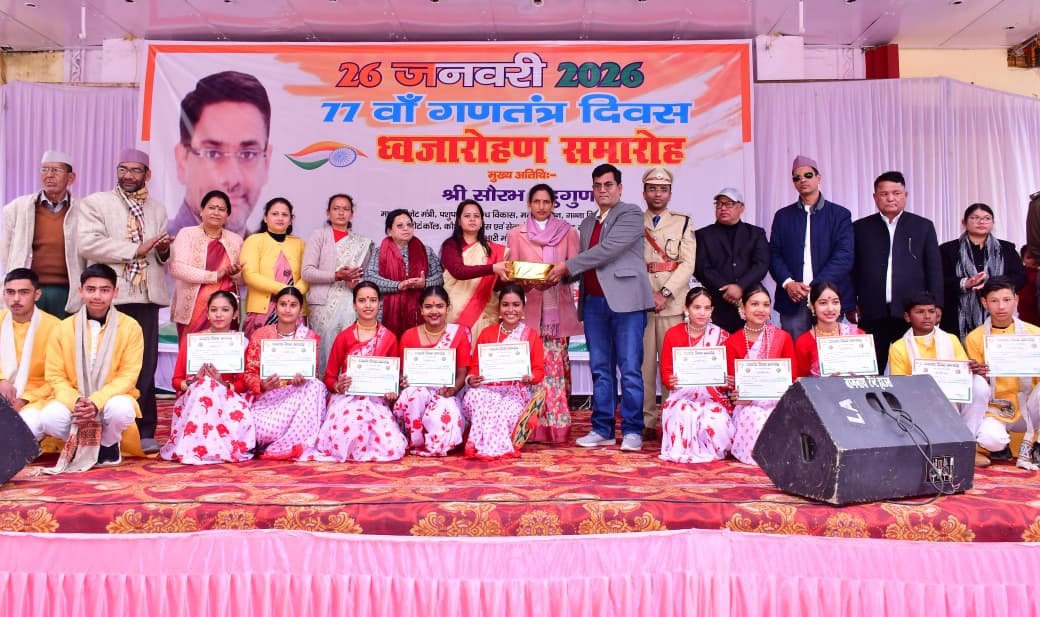 राष्ट्रीय पर्व गणतंत्र दिवस जनपद बागेश्वर में हर्षोल्लास, गरिमा और उत्साह के साथ मनाया गया। इस अवसर पर मुख्य समारोह नुमाइशखेत मैदान में आयोजित किया गया, जहां जिलाधिकारी आकांक्षा कोंडे ने ध्वजारोहण कर कार्यक्रम का शुभारंभ किया तथा उपस्थित जनसमूह को राष्ट्रीय एकता, अखंडता एवं संविधान के प्रति निष्ठा की शपथ दिलाई।