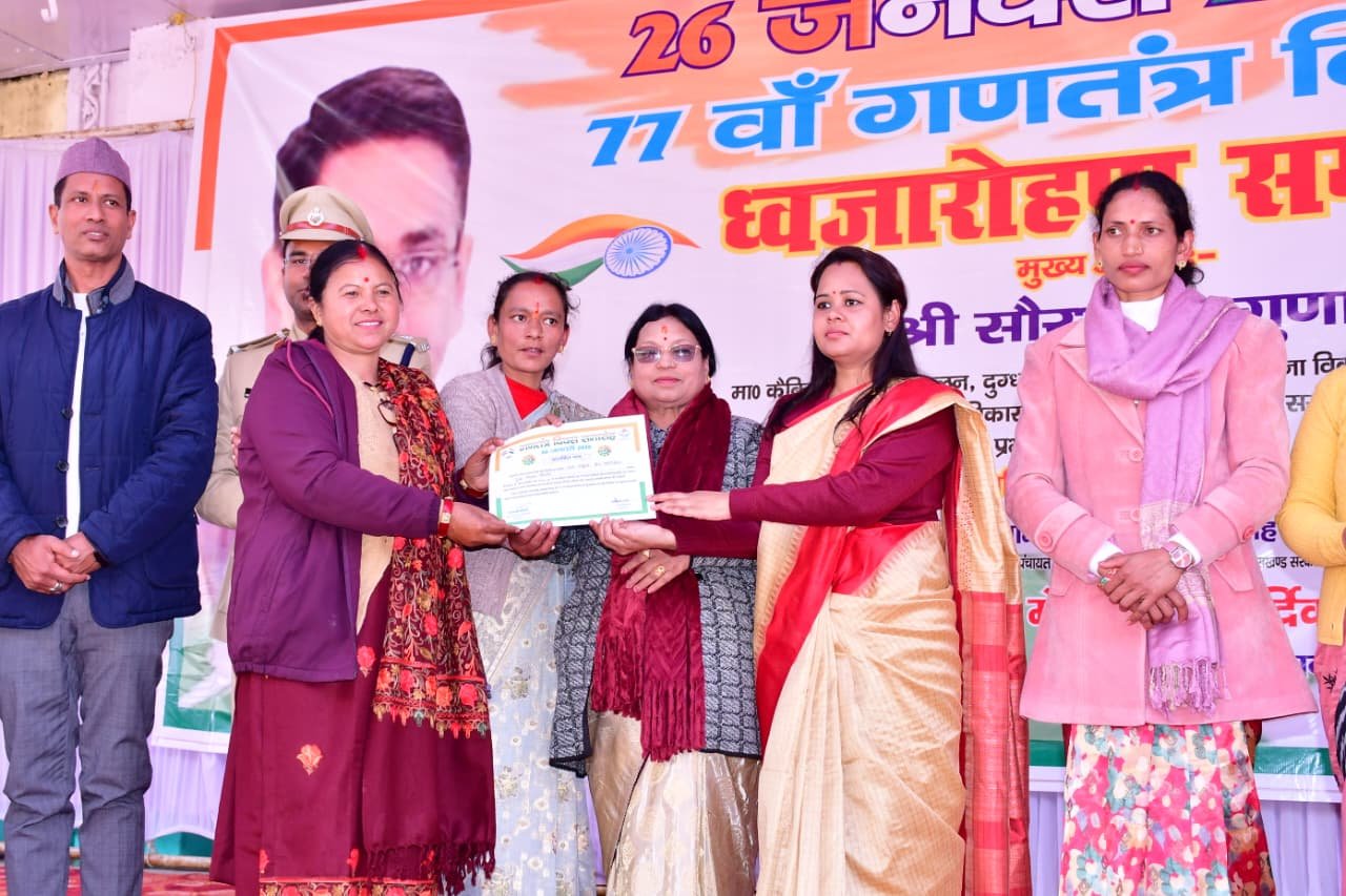 इस अवसर पर जिलाधिकारी, विधायक एवं जिला पंचायत अध्यक्ष द्वारा संयुक्त रूप से स्वतंत्रता संग्राम सेनानियों के परिजनों नंदी देवी, भगवती देवी, पार्वती देवी एवं बसंत बल्लभ पांडे को सम्मानित किया गया। साथ ही उत्कृष्ट कार्य करने वाले अधिकारियों, कर्मचारियों एवं समाजसेवियों को भी सम्मानित किया गया।