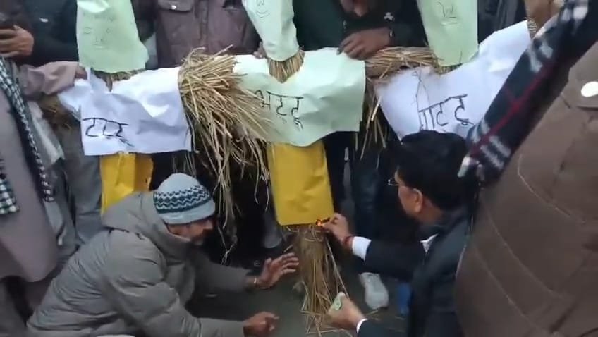 खबर उत्तराखंड के जनपद उधम सिंह नगर के जसपुर नगर से है जहां आज देर शाम जसपुर क्षेत्रीय कांग्रेस विधायक आदेश सिंह चौहान अपने सैकड़ो समर्थकों के साथ नगर के गांधी पार्क पर एकत्र हुए और वहां से पूर्व में हुई अंकिता भंडारी के हत्यारे अट्टू बट्टू और गट्टू के पुतलों के साथ गांधी पार्क से प्रारंभ कर ठाकुर मंदिर मेन बाजार होते हुए कोतवाली के रास्ते सुभाष चौक पहुंचे और कांग्रेसियों के तेज स्वर में नारो के साथ अंकिता के हत्यारो के पुतले दहन किए और भाजपा सरकार के खिलाफ जमकर नारेबाजी की तथा हत्यारों को जेल भेजने की सरकार से मांग की।वही जसपुर विधायक आदेश सिंह चौहान ने कहा कि महिलाओं के सुरक्षा व सम्मान का दम भरने बाली भाजपा नेताओं की करतूत से साफ जगजाहिर हो गया कि भाजपा सरकार का महिलाओं के दोषियों की रहनुमाई क्यो कर रही है और अट्टू बट्टू गट्टू पर कार्यवाही कब करेगी अंकिता भंडारी के हत्यारों की सीवीसीआईडी की निष्पक्ष जांच कर दोषियों की फांसी की सजा दिलाकर मृतक अंकिता की आत्मा को शांति प्रदान करने की मांग की।
