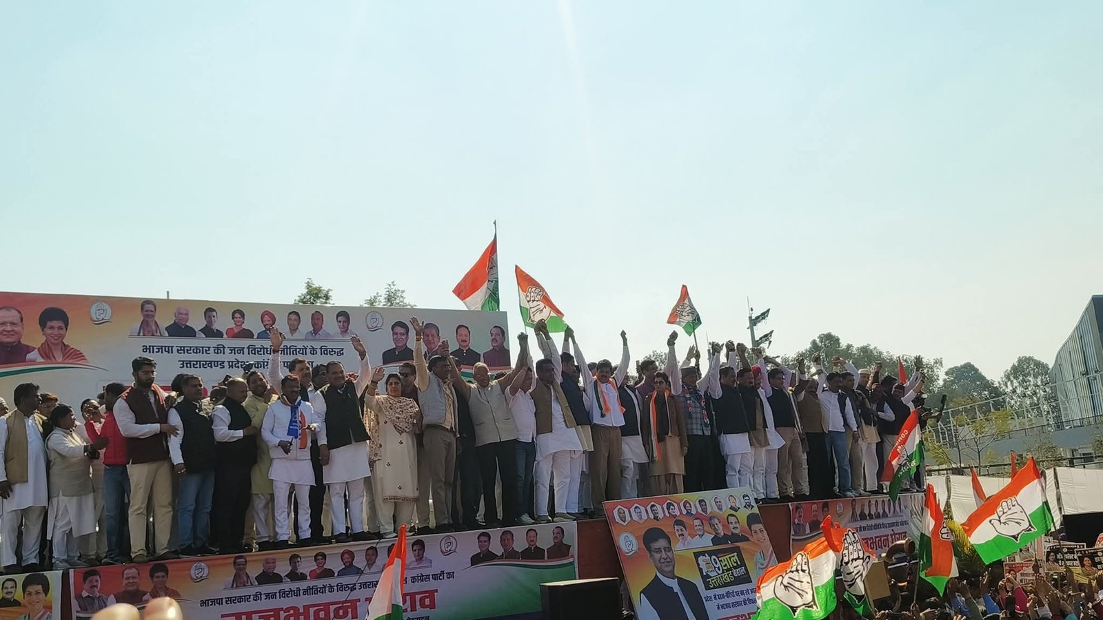 भाजपा सरकार के खिलाफ आज कांग्रेस का पहले से ही प्रस्तावित लोग भवन कुच शुरू हो गया है राजधानी के परेड ग्राउंड में सुबह से ही पूरे प्रदेश से सैकड़ो की संख्या में कार्यकर्ता और युवा ढोल नगाड़ों के साथ रैली को सफल बनाने के लिए पहुंच रहे हैं इस मौके पर कांग्रेस प्रदेश चुनाव समिति के अध्यक्ष हरक सिंह रावत ने सरकार पर आरोप लगाया कि इस बार 2027 के चुनाव में जनता ने भाजपा को हटाने का मन बना लिया हैक्योंकि यह सरकार राज्य में भ्रष्टाचार लॉयन ऑर्डर महिला सुरक्षा जंगली जानवरों के हमलों से छुटकारा आपदा में मुआवजा जैसी कई गंभीर समस्याओं से आम जनमानस को निजात नहीं दिला पा रही है आम आदमी आज दहशत के साए में जी रहा है 15 दिनों में पांच गोली कांड जैसी जगन्य घटनाएं हो चुकी है वहीं दूसरी ओर भ्रष्टाचार चरम सीमा पर है