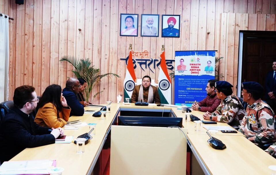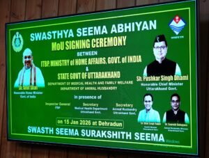 शासकीय आवास पर प्रदेश सरकार एवं भारत–तिब्बत सीमा पुलिस के मध्य ”स्वस्थ सीमा अभियान” के अंतर्गत MoU पर हस्ताक्षर किए गए। यह एमओयू पिथौरागढ़, चमोली और उत्तरकाशी के 108 सीमावर्ती गांवों में निवासरत नागरिकों को एकीकृत प्राथमिक स्वास्थ्य सेवाएं उपलब्ध कराने के उद्देश्य से किया गया है। इसके तहत ITBP द्वारा योग्य चिकित्सक, पैरामेडिकल स्टाफ, एमआई रूम तथा टेली-मेडिसिन सुविधाएं उपलब्ध कराई जाएंगी और निर्धारित कार्यक्रम के अनुसार गांवों में नियमित स्वास्थ्य सेवाएं दी जाएंगी।